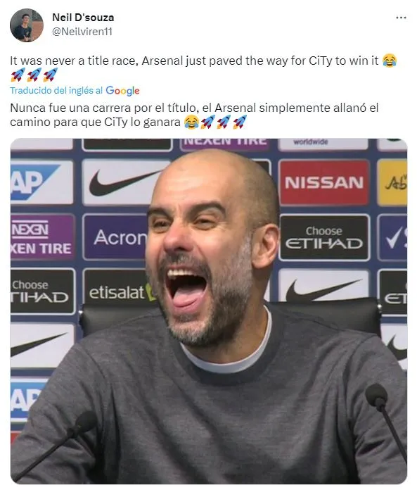 El Arsenal perdió frente al Nottingham Forest por 1 a 0 en la fecha 37 de la Premier League y se quedó sin posibilidades de soñar con el título. Luego de pelear durante toda la temporada, el Manchester City se proclamó campeón de la liga sin ni siquiera disputar su jornada. Sin dudas esto desató muchos memes.