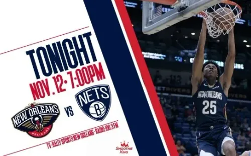 El partido de Brooklyn Nets vs. New Orleans Pelicans por la NBA será este viernes 12de noviembre en el Smoothie King Center.