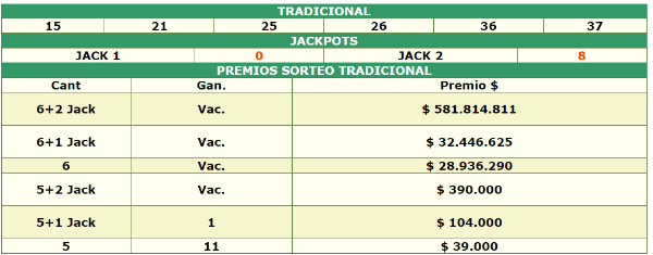 El pozo estimado para este sorteo del sábado 30de octubre es de$726.000.000.
