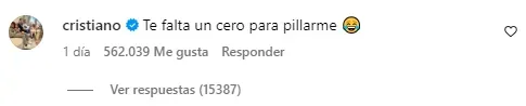 Miles de comentarios emergieron instantáneamente para participar, pero entre todos ellos se mezcló uno de Cristiano Ronaldo. El portugués, con quién compartió equipo en Real Madrid, bromeó sobre su cantidad de seguidores: “Te falta un cero para pillarme“.