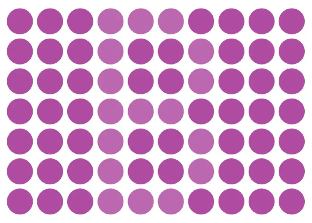 Para eso, deberás prestar atención a los puntos de color que tienen un tono diferente a los demás. Los puntos de distinto color forman la letra escondida.