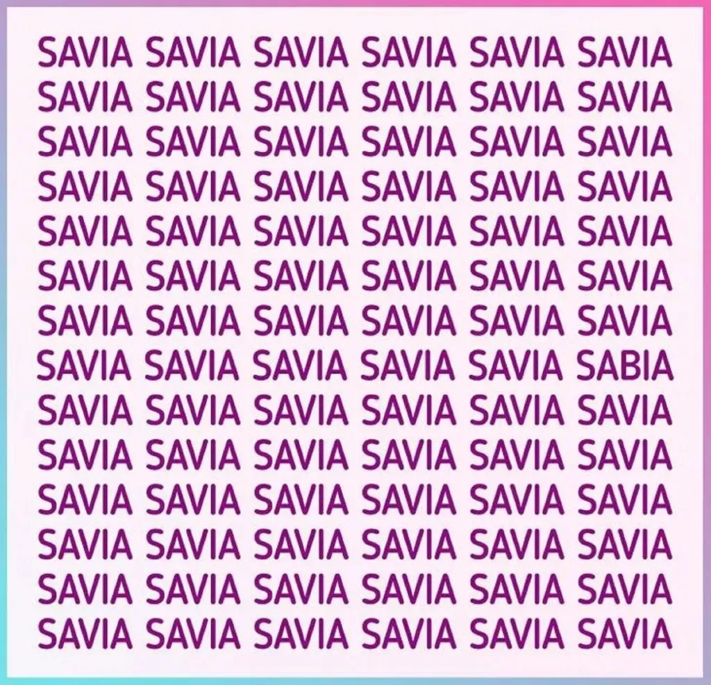 Los mejores retos virales y sopas de letras están en Bolavip. Esta vez, te traemos un nuevo desafío para que ejercites tu mente y pruebes qué tan rápido eres. Encuentra la palabra INTRUSA en la imagen donde se repite la palabra SAVIA. Una de ellas no es tal y tendrás solamente 6 segundos para ubicarla. El 98% de nuestros lectores no lo logra en ese tiempo. Puede estar de forma horizontal, vertical, diagonal o al revés. ¡A jugar!