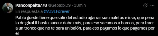 Se trata de Federico Girotti, quien hasta el momento no sabe lo que es hacer un gol con la camiseta de Alianza. Esto claro que viene generando críticas de los hinchas, los cuales quieren ver en acción al delantero por el que se pagó poco más de 1,5 millones de dólares. Una cifra que por ahora no ha justificado en el cuadro victoriano.