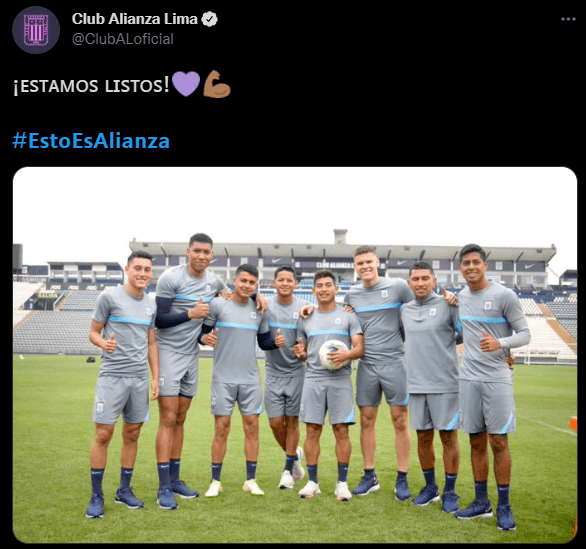 “¡ᴇꜱᴛᴀᴍᴏꜱ ʟɪꜱᴛᴏꜱ! #EstoEsAlianzaLima”, fue lo que colocó la cuenta principal del ‘equipo del pueblo’ en Twitter. Adjuntando la fotografía de jugadores como Jairo Concha, Yordi Vílchez, Gonzáles Zela, entre otros. Sus hinchas no dudaron en comentar, y hacer viral este mensaje.