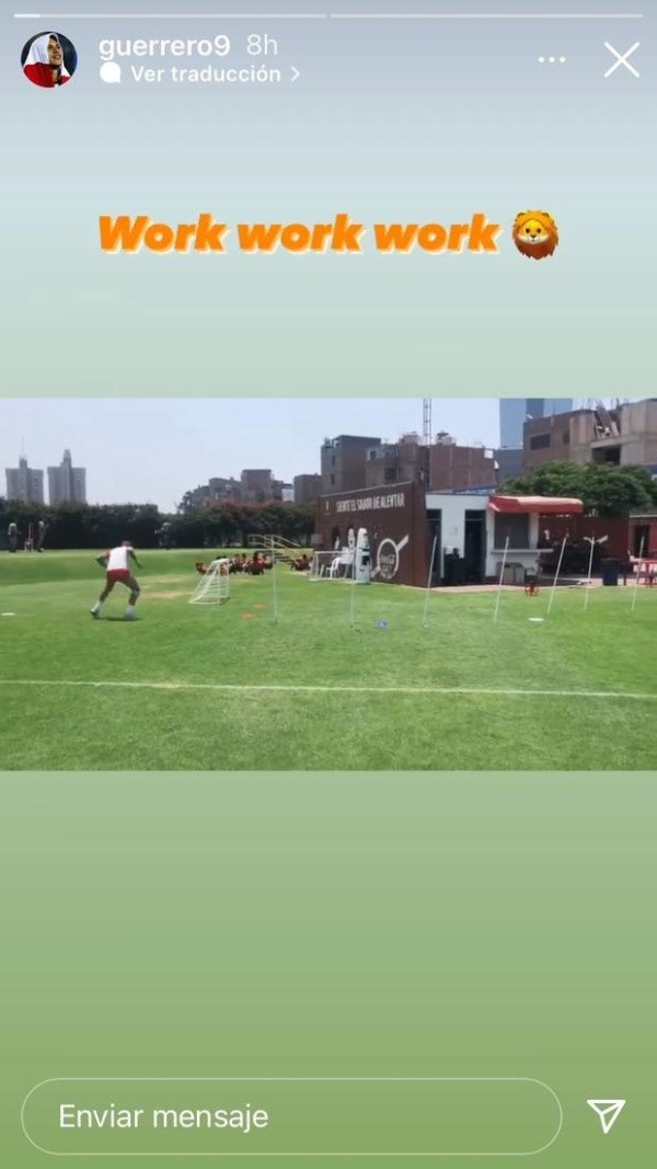 El delantero peruano publicó en su cuenta de Instagram los trabajos que viene realizando en la Videna, bajo la atenta supervisión del comando técnico de la Selección Peruana, que en todo momento le han brindado su apoyo al ‘Depredador’. “Work, work, work” es lo que se puede ver en la foto publicada en las historias del futbolista. Cabe resaltar que se ha hablado sobre la llegada del atacante a Alianza Lima, algo que él aclaró.