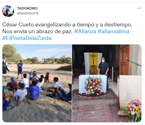 Así lo quiso hacer público en este momento, solo muy pocas personas conocían este lado de su día a día. El periodista Wilmer Robles Tadokoro lo comentó de la siguiente manera: “César Cueto evangelizando a tiempo y a destiempo. Nos envía un abrazo de paz”. Adjuntando fotos bastante emotivas, mientras obra.