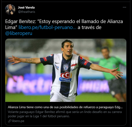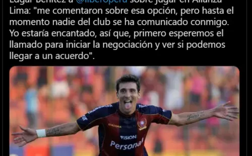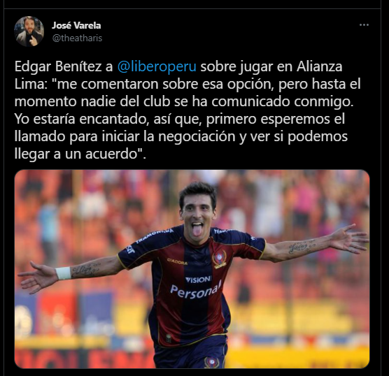 Precisamente Alianza Lima, equipo que conoce muy bien Benítez, al ser de trascendencia internacional como mismo menciona, es dirigido por un conocido suyo como es Carlos Bustos: “Carlos Bustos me conoce. En el fútbol mexicano tuve varios enfrentamientos (Benítez jugaba por el Toluca) y sabe la persona profesional que soy y considero que eso ayuda mucho. Yo –si llego a Alianza- trataría de hacer mi trabajo y dejar una buena imagen a nivel profesional”.