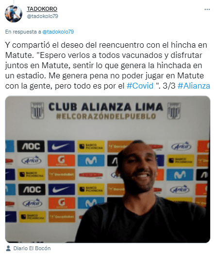 Finalmente, dejó un mensaje para todo el pueblo íntimo. Hernán Barcos desea ver el coloso de “La Victoria” repleto cuando se pueda, una vez pase el tema de COVID-19: “Espero verlos a todos vacunados y disfrutar juntos en Matute, sentir lo que genera la hinchada en un estadio. Me genera pena no poder jugar en Matute con la gente, pero todo es por el Covid-19”.