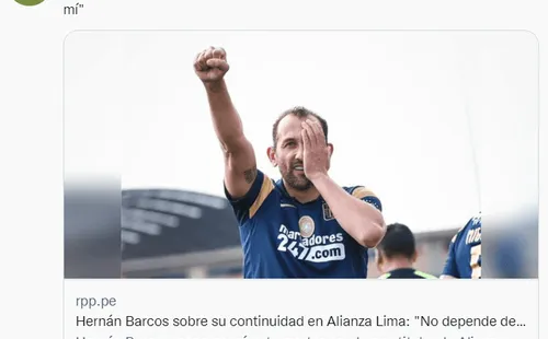 En la previa del duelo entre Alianza Lima y César Vallejo en Trujillo, por la fecha 14 del Torneo Clausura, Hernán Barcos,delantero ‘blanquiazul’,manifestó que por el momento está enfocado en quedarse con el primer lugar del certamen,y así poder disputar la final de la Liga 1. Asimismo,aseguró que su renovación no está en sus manos, pero que todos saben cuál es su deseo.