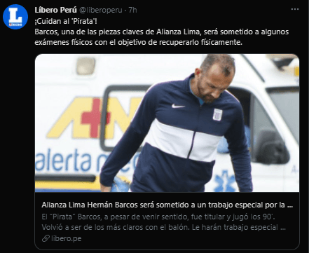 La información la brinda el ‘Diario Líbero’: “¿Jugará la próxima fecha ante Sport Boys? Aún se desconoce la decisión porque falta aún una semana para el partido. Lo cierto es que a partir de mañana el argentino Barcos será sometido a algunos exámenes físicos con el objetivo de recuperarlo físicamente”.