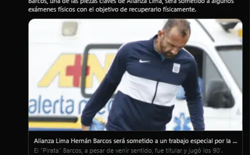 Alianza Lima estaría pensando hacer un programa especial con Hernán Barcos en los próximos días, porque el jugador ex LDU de Quito podría lesionarse, lo cual sería una mala noticia para el plantel ‘blanquiazul’, el cual depende de su jerarquía dentro y fuera de la cancha.