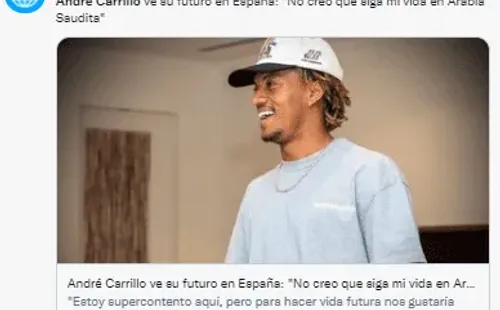 La vida que lleva en estos momentos solo le hace pensar en fútbol y la tranquilidad familiar, más allá no tiene problemas específicos. Esto cuenta André Carrillo desde Arabia Saudita, considerado como una de las estrellas más importantes en Al-Hilal, por su estilo de juego, y apariciones determinantes cuando se trata de ganar trofeos.
