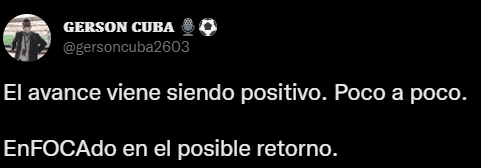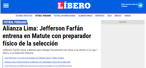 En la versión web del medio de comunicación no dan fecha, pero sí avisos de regreso, a estar muy pendientes: “Lo que todavía está en proceso de confirmación es si el profesional que estuvo con Jefferson Farfán es el preparador físico número uno llamado Gustavo Leombruno o el preparador físico número dos, Néstor Ibarra. Uno de los dos estuvo hoy con el ’10 de la calle’ que apunta a volver pronto a jugar”.
