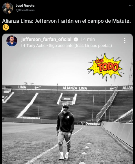 Los diversos periodistas deportivos, con especialidad en datos sobre Alianza Lima, ya han soltado algunas pistas sobre su futuro. Primero fue José Varela, del ‘Diario Líbero’, quien algunos días atrás soltó el siguiente comentario: “TAMBIÉN VIENE… Jefferson Farfán pronto daría una agradable sorpresa en Alianza Lima”. Despertando ahí un interés sincero por parte de sus seguidores, la mayoría del cuadro ‘blanquiazul’.