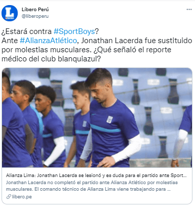 Para después especificar si sería o no baja contra los rosados en el próximo duelo de Alianza Lima por Liga 1: “La presencia de Lacerda ante Sport Boys es una incógnita. El comando técnico esperará hasta el último momento al defensor y confían que se pueda recuperar a tiempo”.