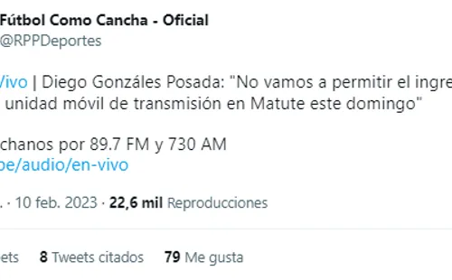 “No vamos a permitir el ingreso de ninguna unidad móvil de transmisión en Matute este domingo”, mencionó Diego Gonzáles Posada en Fútbol Como Cancha de RPP.