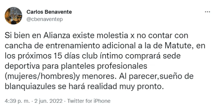 “Si bien en Alianza existe molestia porno contar con cancha de entrenamiento adicional a la de Matute, en los próximos 15 días club íntimo comprará sede deportiva para planteles profesionales (mujeres/hombres)y menores. Al parecer, sueño de blanquiazules se hará realidad muy pronto”, reveló el periodista Carlos Benavente en su cuenta de Twitter.
