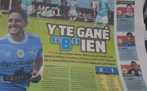 En esta oportunidad utilizó un juego de palabras para graficar lo sucedido en el duelo entre Alianza Lima y Sporting Cristal, donde el conjunto de Roberto Mosquera se hizo ganador (2-1). El detalle principal es la alineación lanzada por ‘La Mosca’. Donde claramente habían jugadores considerados como suplentes, osea un equipo “B”.