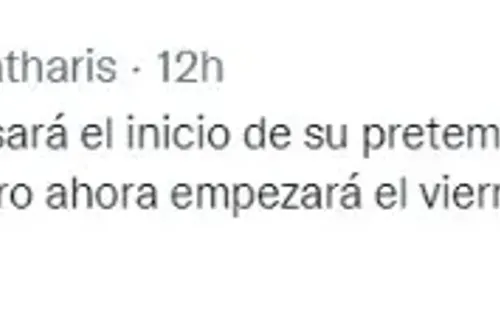 “Alianza Lima retrasará el inicio de su pretemporada. Estaba programado iniciar mañana, pero ahora empezará el viernes”, comentó en su cuenta de Twitter. Luego, en el diario Líbero, medio en el que labora, alcanzó más información sobre el tema: “Por los casos asintomáticos por la COVID-19, el bicampeón del fútbol peruano se vio en la obligación de modificar el inicio de la pretemporada”, se suscribió en el mencionado medio deportivo.