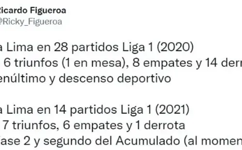 Como sabemos, en el año 2020 el club Alianza Lima tuvo un fatal torneo. Los ‘íntimos’ jugaron 28 partidos en la Liga 1, de los cuales lograron solo 26 puntos, 6 triunfos, 8 empates y 14 derrotas, quedando antepenúltimos en la tabla de posiciones, lo que generó el descenso a la Liga 2, pero por temas administrativos que tuvo el cuadro de Carlos Stein, los ‘blanquiazules’ pudieron quedarse en la máxima división.