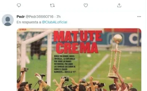 Aunque, y también omitiendo los negativos comentarios de los hinchas de Universitario, una gran cantidad de fanáticos de Alianza Lima destacó la importante fecha. Recordando el día que vencieron a Estudiantes de La Plata por la Copa Libertadores, los simpatizantes destacaron que están a solo tres años de que Matute cumpla 47 años.