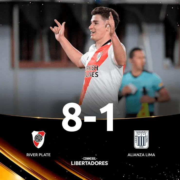 En el día de su aniversario (121 años), River Plate, humilló a Alianza Lima tras golearlo 8-1 en el Estadio Monumental de Buenos Aires, por la última fecha del Grupo F de la Conmebol Libertadores 2022. De esta manera, el cuadro dirigido por Carlos Bustosestiró su racha negativa a 29 encuentros sin conocer de triunfos en el certamen internacional.