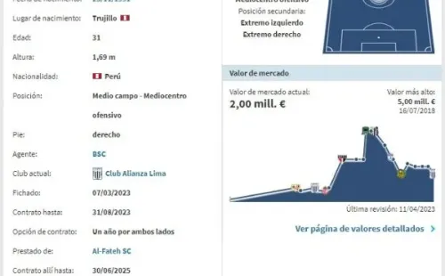 Todo esto lo explica el portal internacional, especializado en el seguimiento de jugadores a nivel mundial. Transfermarkt hoy por hoy, valora al ex Toluca y Pachuca del fútbol mexicano como un jugador en claro declive, el cual podrá revertir solo si él se pone a jugar como sabe.
