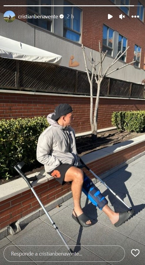 Así pues, estando todavía en España, el mediocampista Cristian Benavente subió una foto a su red social Instagram. Mostrándolo con la pierna izquierda en una férula de emergencia, el futbolista también estaba con un par de muletas.