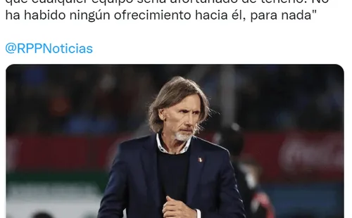 “Ricardo Gareca tiene una evaluación distinta. Seríamos afortunados que él quisiera considerarnos. Es un extraordinario entrenador y creo que cualquier equipo sería afortunado de tenerlo. No ha habido ningún ofrecimiento hacia él, para nada”, señaló Bellina a RPP.