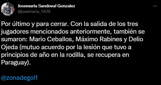 Así mismo, dejó un detalle más, de bajas en ‘Los Heroicos’: “Por último y para cerrar. Con la salida de los tres jugadores mencionados anteriormente, también se sumaron: Mario Ceballos, Máximo Rabines y Delio Ojeda (mutuo acuerdo por la lesión que tuvo a principios de año en la rodilla, se recupera en Paraguay)”. Todo completo, desde la logística, hasta el aspecto del plantel de Atlético Grau. Advertidos están en Alianza Lima.