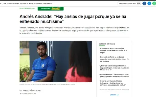 Reafirmando que solo depende de su talento, lo mucho que le sume a Alianza Lima con goles o asistencia. Andrés Andrade tiene claro, que vino a la Liga 1, para pegar el gran salto al cuadro cafetero: “Sí, es una revancha. Algo que tengo en deuda. Ojalá que se me pueda dar y pueda conseguir ese cupo, al menos, para un encuentro de Eliminatorias o Dios quiera, una Copa América”.