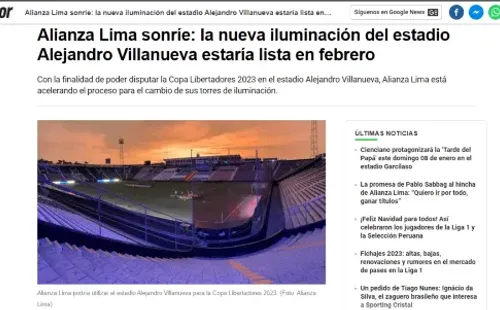 Así comienza el contexto de este dato: “Alianza Lima aceleró todo este largo proceso con el desmontaje de las cuatro torres que sostenían las antiguas luminarias del estadio Alejandro Villanueva. De esta manera, esperan cumplir con los estándares establecidos por la CONMEBOL y la FIFA, y poder utilizar su predio en competencias internacionales, algo que no pudo hacer en la pasada Copa Libertadores 2022, donde tuvo que jugar sus partidos de local en estadio Nacional”.