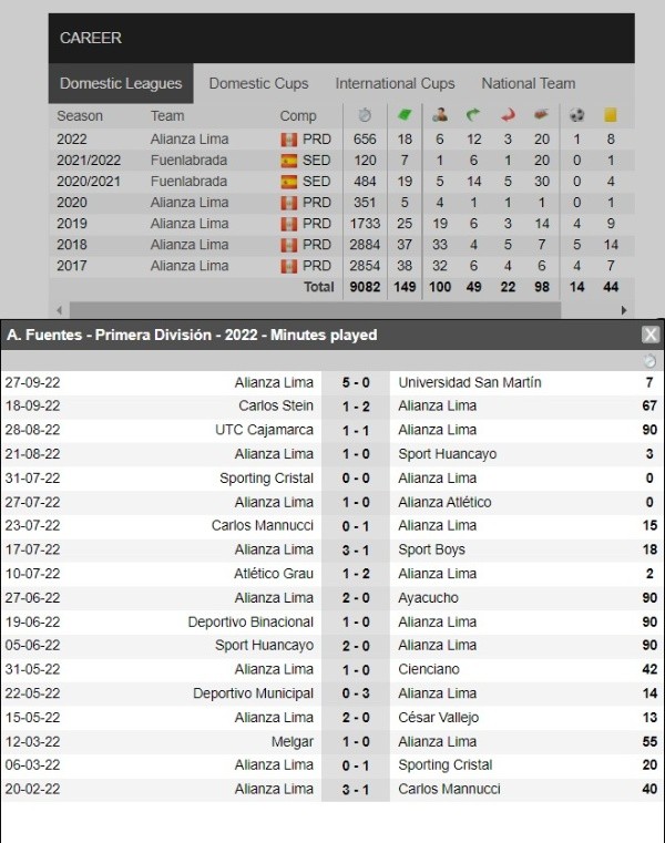 Jugando su último partido con Alianza Lima el lunes 26 de septiembre, Aldair Fuentes tuvo siente minutos en la goleada por 5-0 ante la Universidad San Martín. Válido por la fecha 13 del Torneo Clausura de la Liga 1, desde aquella fecha no ha sumado ningún minuto más.
