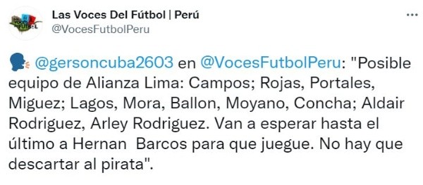 Los ‘blanquiazules’ ya tienen una posible alineación para enfrentar a su rival este sábado 24 de julio. Jugarían con un esquema táctico 3-5-2: Ángelo Campos; Renato Rojas, Pablo Míguez, Jefferson Portales; Oslimg Mora, Ricardo Lagos, Josepmir Ballón, Jairo Concha, Axel Moyano; Arley Rodríguez, Aldair Rodríguez, de esa manera saldría a afrontar el encuentro frente a Alianza Universidad de Huánuco. Igual esperarán hasta el último al delantero argentinoHernán Barcos.