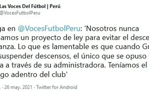 Igual, hay que recordar todo lo que se hizo también para recuperar la categoría. Pidieron por ejemplo que les den los puntos del encuentro contra Sport Huancayo por protocolos. Estuvieron cerca a sumarse a un pedido de Atlético Grau para que no haya descenso.