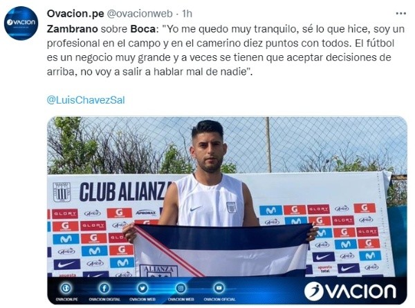 “Con el tema de Boca, se decidió en un día y medio cuando todo estaba cerrado. Ocurrieron cosas complicadas y lo primero que hice fue regresar a Perú y romper contrato por mutuo acuerdo”, explicó en un primer inicio Carlos Zambrano.