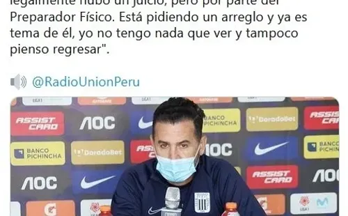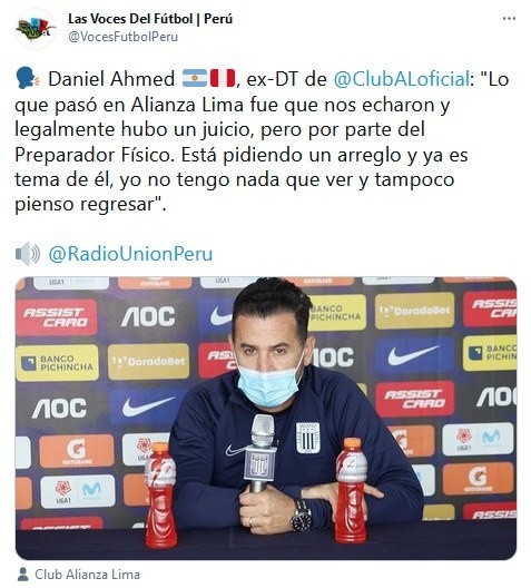 Sobre los problemas que tuvo su salida y de un eventual regreso afirmó: “Lo que pasó en Alianza Lima fue que nos echaron y legalmente hubo un juicio, pero por parte del Preparador Físico. Está pidiendo un arreglo y ya es tema de él, yo no tengo nada que ver y tampoco pienso regresar”.