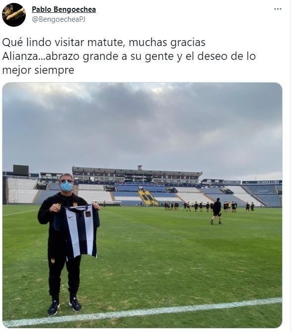 “Qué lindo visitar matute, muchas gracias Alianza Lima, abrazo grande a su gente y el deseo de lo mejor siempre”, escribió el técnico en su cuenta de Twitter con una foto con la camiseta de Alianza.