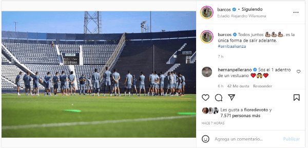 El que en su cuenta personal de Instagram subió una fotografía donde se le ve junto aparte de la plantilla, y brindó un mensaje favorable para todos sus seguidores. Pidiendo calma, y aliento incansable para salir de este trago amargo, considerado como una mala racha, o una pequeña crisis profesional. Así se comportó ‘El Pirata’.