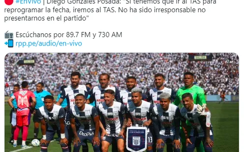 “Si tenemos que ir al TAS para reprogramar la fecha, iremos al TAS. No ha sido irresponsable no presentarnos en el partido”, mencionó Diego Gonzáles Posada en Fútbol Como Cancha de RPP.