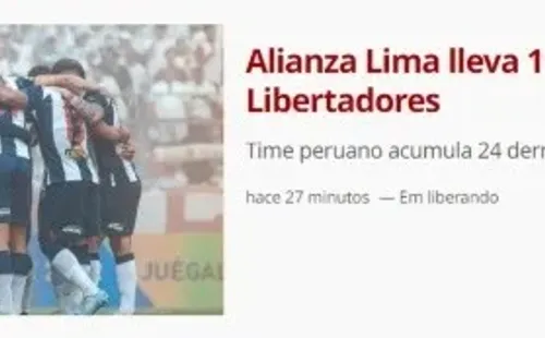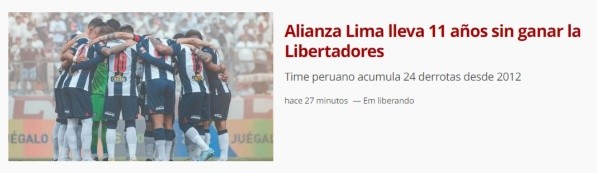 “Alianza Lima, adversario de Atlético Paranaense y Atlético Mineiro en la fase de grupos, vive una secuencia negativa en los partidos de la Copa Libertadores. La última victoria en la competencia ocurrió hace 11 años. Los peruanos vencieron 1-0 a Nacional de Uruguay el 13 de marzo de 2012. Desde entonces suman 5 empates y 24 derrotas en 2012, 2015, 2018, 2019, 2020 y 2022. Alianza Lima no participó en la Copa Libertadores 2013, 2014 , 2016, 2017 y 2021″, apunta Globoesporte en su versión web.