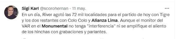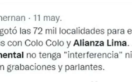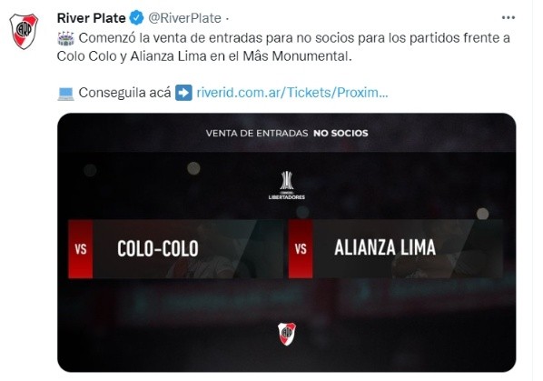 Los ‘Millonarios’ ya afirmaron que el estadio Monumental estará totalmente copado cuando jueguen contra Alianza Lima, pues las entradas ya se vendieron en su totalidad y tendrán casa llena para ese partido. Este será el último compromiso en la fase de grupos dentro de la Copa Libertadores donde, dependiendo de los resultados de la fecha 5, los ‘Blanquiazules’ podrían tentar llegar a la siguiente ronda del torneo continental.