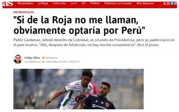 Sobre Pablo Cárdenas se sabe que nació en Providencia, Chile, pero que tiene raíces de nuestro país, pues el padre del jugador es peruano. Tras esto el futbolista podría elegir, en un futuro, jugar en la Selección Peruana o chilena, si es que es convocado por ambas. Cabe resaltar que el libro de pases en el torneo local cierra el 8 de marzo.