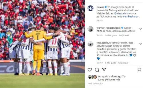 Mediante su cuenta de Instagram, el ex atacante de Grêmio de Porto Alegre y Palmeiras en Brasil, dejó una fotografía donde todos están juntos, abrazados a un solo destino. El cual es ser campeones nacionales, al igual que la temporada pasada: “Yo escogí creer desde el primer día. Todos juntos el sábado en Matute. Esto es Alianza Lima nunca es fácil, nunca me rindo. Arriba Alianza”.