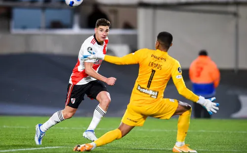 Álvarez rompió el arco de Ángelo Campos en los minutos 15, 18, 41, 54, 57 y 83, haciendo una jornada histórica en el estadio Monumental de los Millonarios.