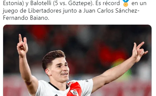 Julián venció la portería de Ángelo Campos en los minutos 15, 18, 41, 54, 57, 83. Catalogando así una jornada histórica en el Estadio Monumental. Superando las actuaciones de otros, como de su ídolo Lionel Messi, quien marcó cinco goles en el Argentina vs. Estonia, o la de Mario Balotelli que también anotó la misma cantidad de goles en el Adana Demirspor-Goztepe.