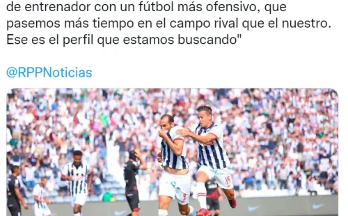 “Nosotros queremos buscar un perfil de entrenador con un fútbol más ofensivo, que pasemos más tiempo en el campo rival que el nuestro. Ese es el perfil que estamos buscando. Dentro de las seis opciones que venimos evaluando, todos son extranjeros. Habíamos pensado en alguna opción peruana, pero principalmente son extranjeros”, agregó.