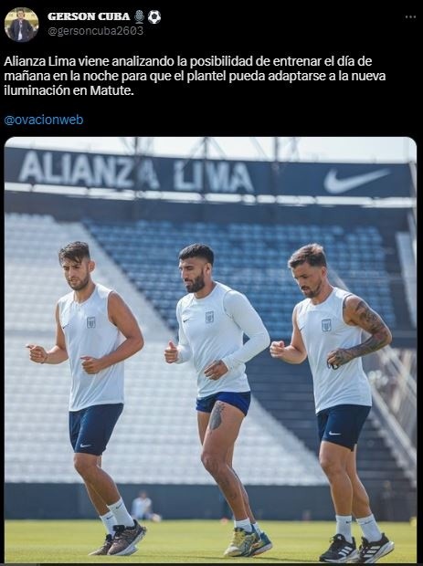 El periodista deportivo de Radio Ovación, Gerson Cuba, reveló por qué los íntimos realizarían el trabajo nocturno: “Alianza Lima viene analizando la posibilidad de entrenar el día de mañana en la noche para que el plantel pueda adaptarse a la nueva iluminación en Matute”. ¿Cómo les irá? Será lindo verlo.