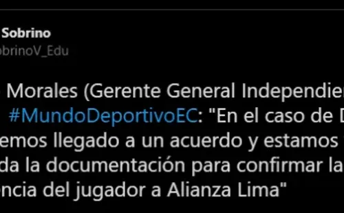 En el programa ‘Mundo Deportivo’, Morales comentó lo siguiente: “En el caso de Leiton, hemos llegado a un acuerdo y estamos viendo la documentación y esperamos poder confirmar la transferencia del jugador a Alianza Lima”. Dejando en claro que solamente una catástrofe no permitiría que llegue el jugador a Perú.