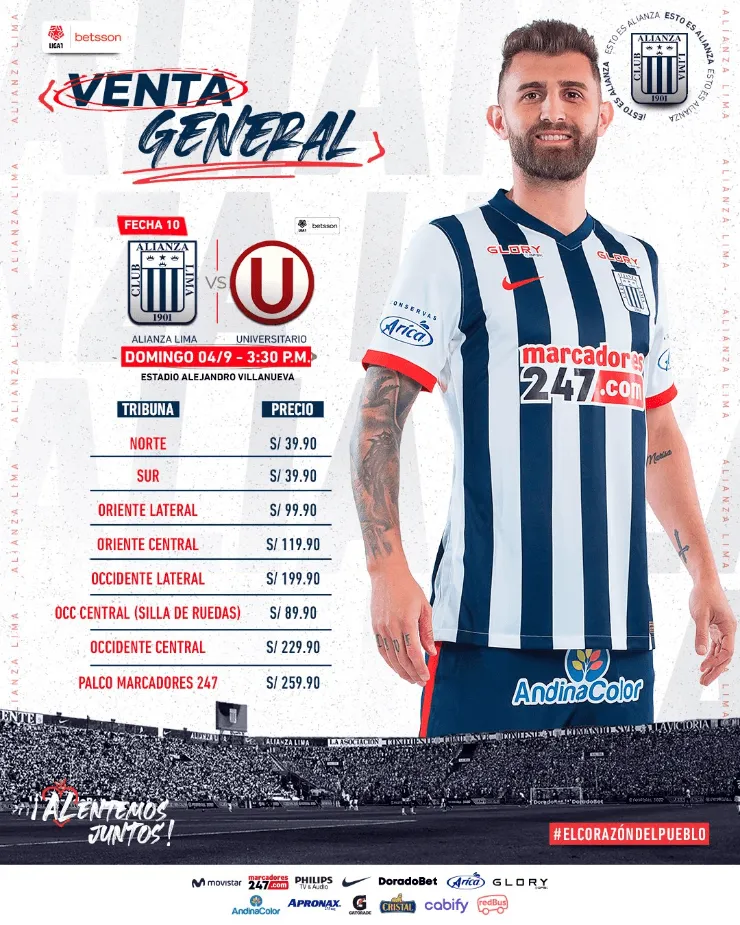 Una nueva edición del clásico del fútbol peruano se llevará a cabo en elTorneo Clausura. El partido entreAlianza Lima vs. Universitariose haprogramado para el domingo 4 de setiembre, en el Alejandro Villanueva, a partir de las 3:30 p.m. (hora peruana). Cabe mencionar que a la fecha las entradas para el clásico se encuentran totalmente agotadas, por lo que Matute será una fiesta total.